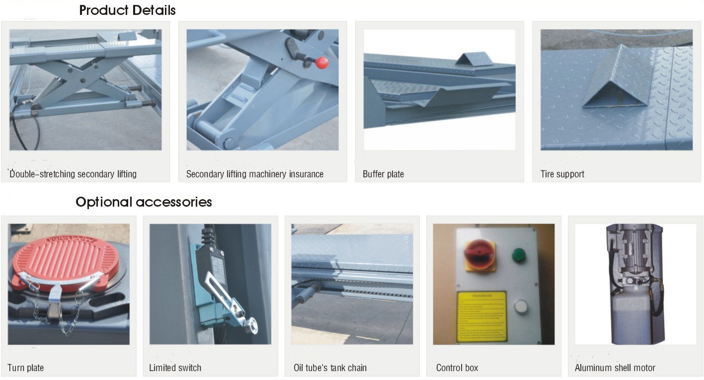 7) La distance intérieure de la plate-forme de levage d'ajustement pour différents véhicules avec différentes bandes de roulement.