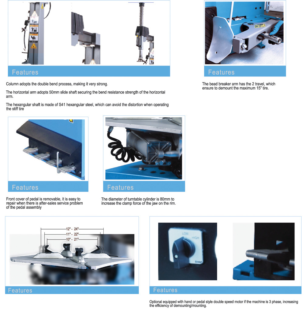 8) facultatif équipé de la main ou du moteur de double vitesse de style de pédale si la machine est la phase 3, augmentant l'efficacité de démonter /mounting.