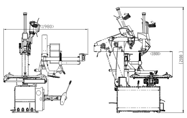 1) Le commutateur automatique de pneu, l'inclinaison vers l'arrière et en avant de la colonne et de la serrure de la colonne peuvent être accomplis d'une manière pneumatique.