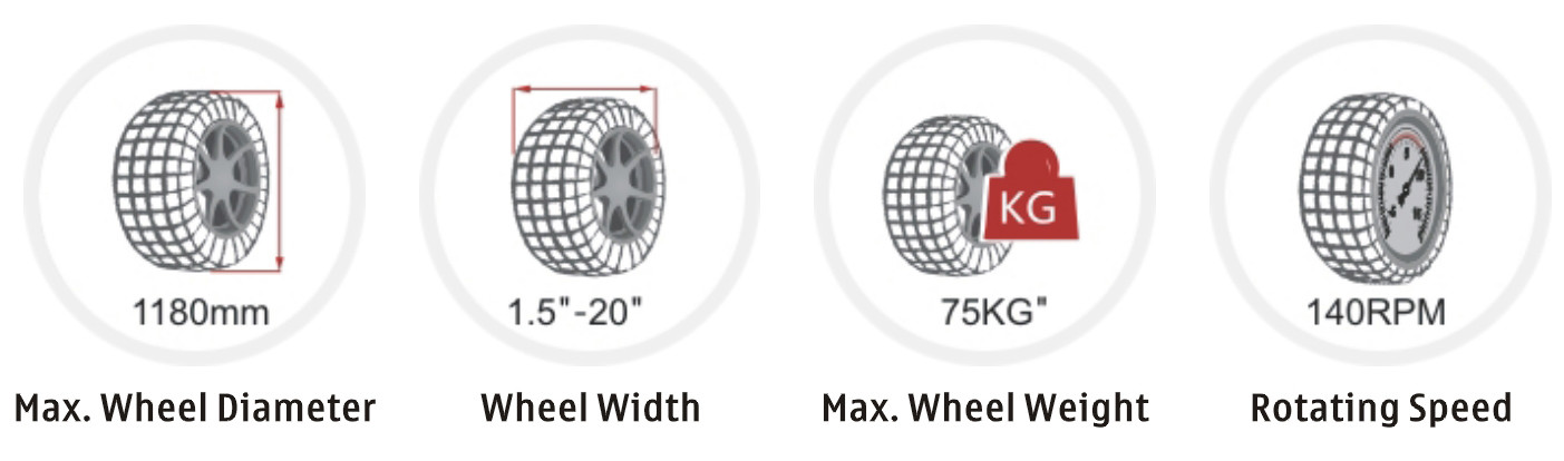 | Diamètre de roue maximum | 1000mm | 1180mm | 1180mm | 1180mm | 1180mm |