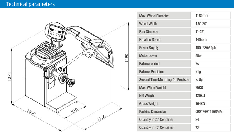 Balancier de roue WB-900/machine de roue/balancier roue de voiture/balancier de équilibrage de pneu