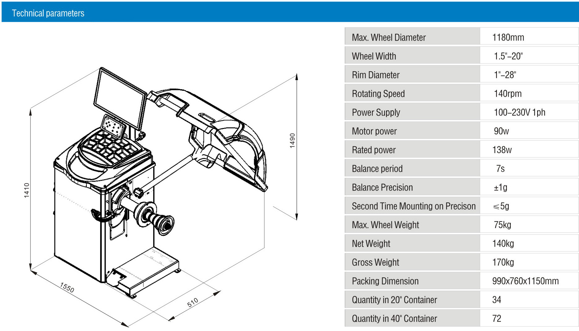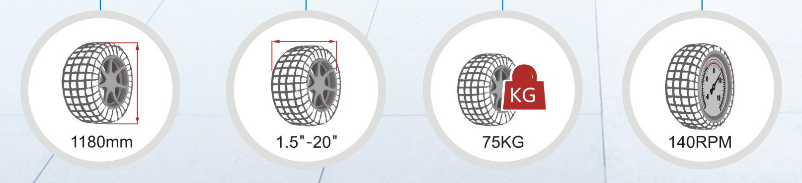 | Diamètre de roue maximum | 1000mm | 1180mm | 1180mm | 1180mm | 1180mm |